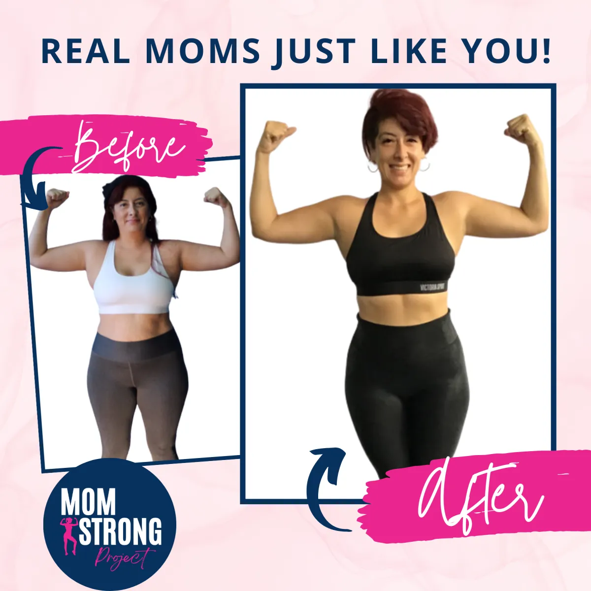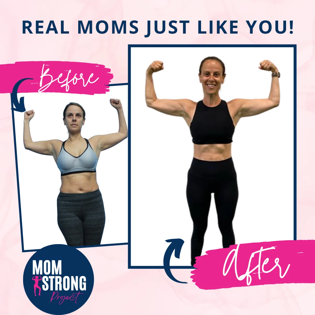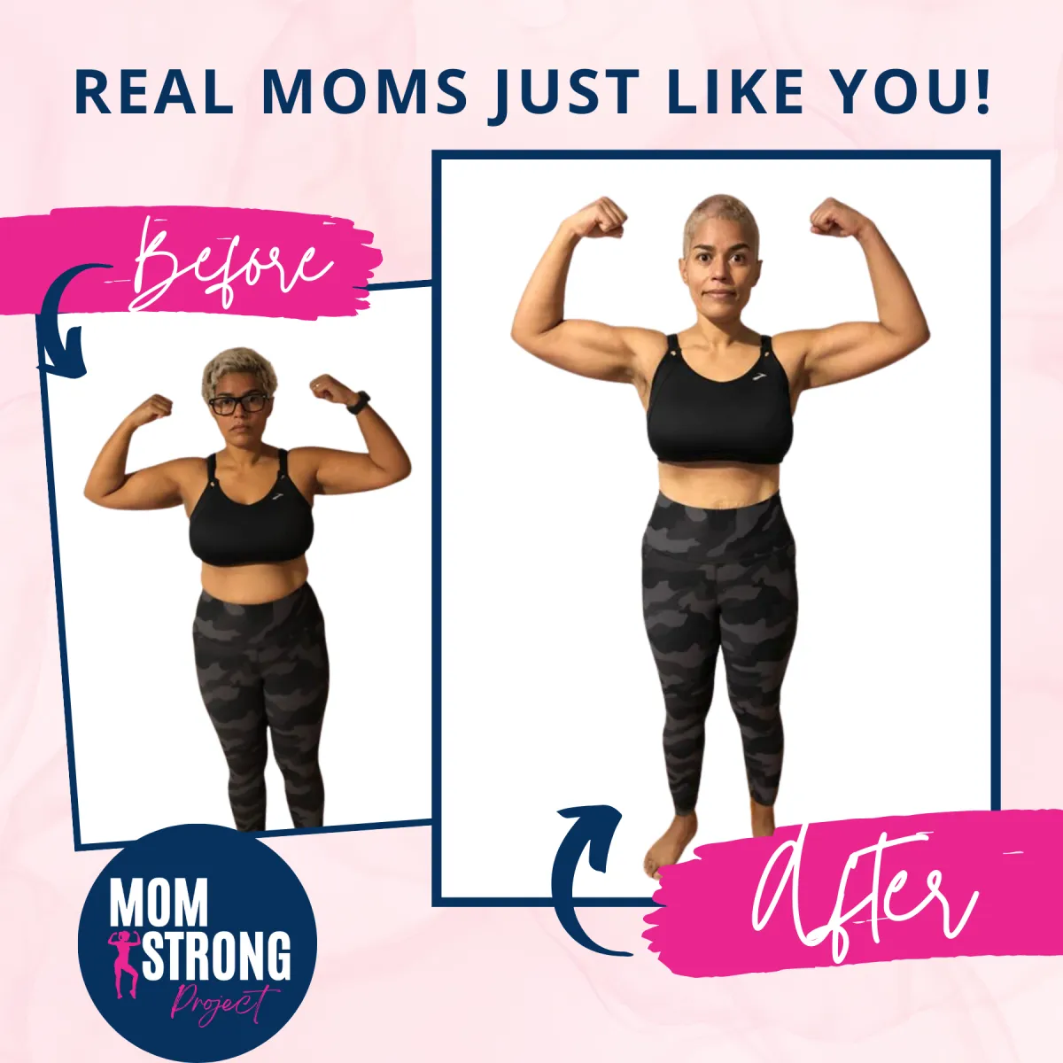Created by two real moms (with 5 kids between them), the Mom Strong Challenge gives you the coaching, structure, and support you need to actually stick with it — without meal-prepping for 9 hours or waking up at 4am.